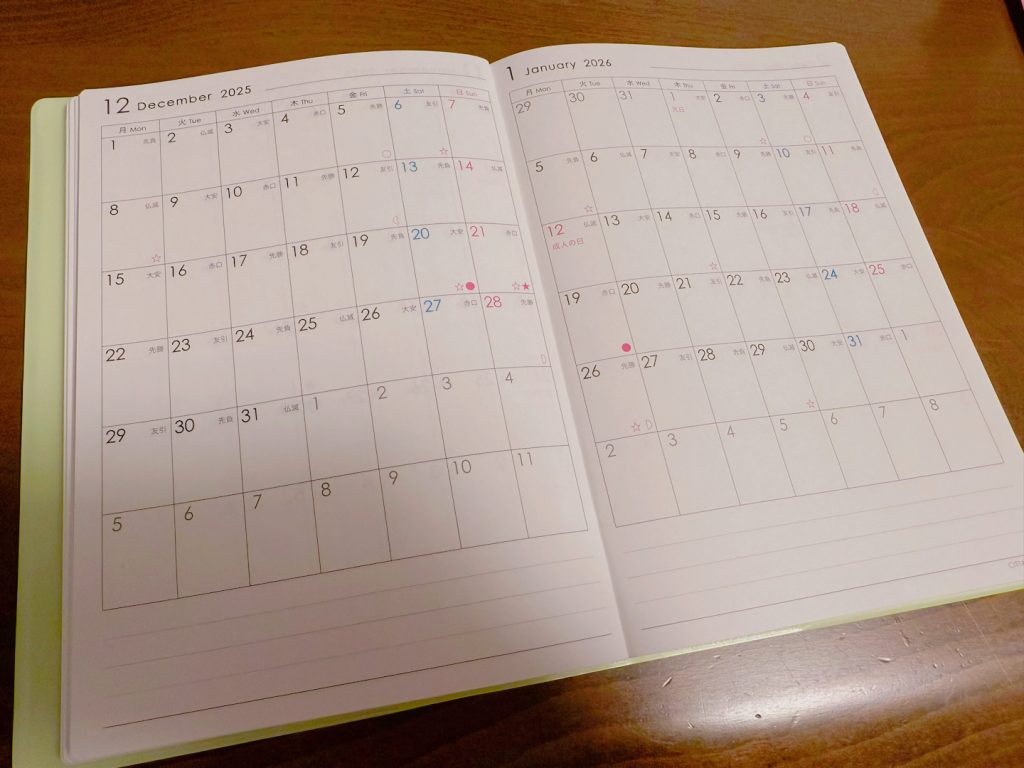 そしてマンスリーは見開きで2ヶ月分見れる構造になっています。