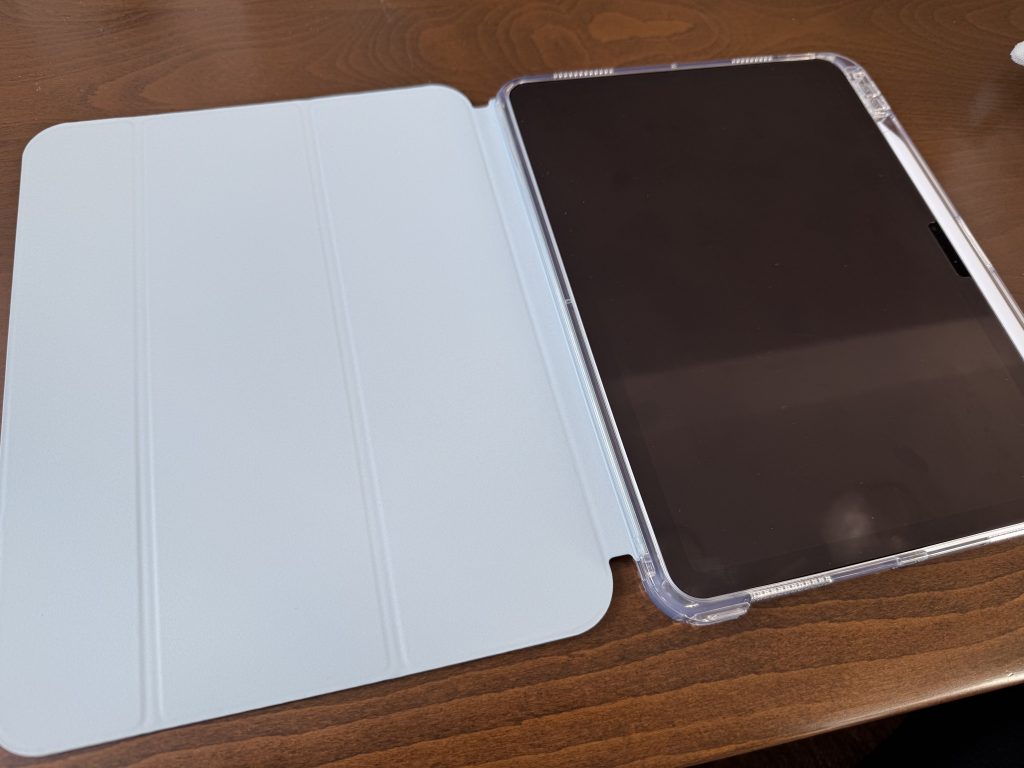 色味はiPad Air本体カラーに合わせてブルーのケースで