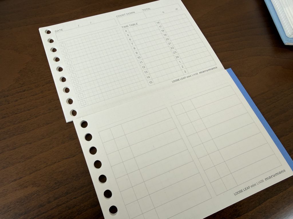 勉強の計画表をこのミニルーズリーフに書き込んで、バインダーに一緒にとじれるので
